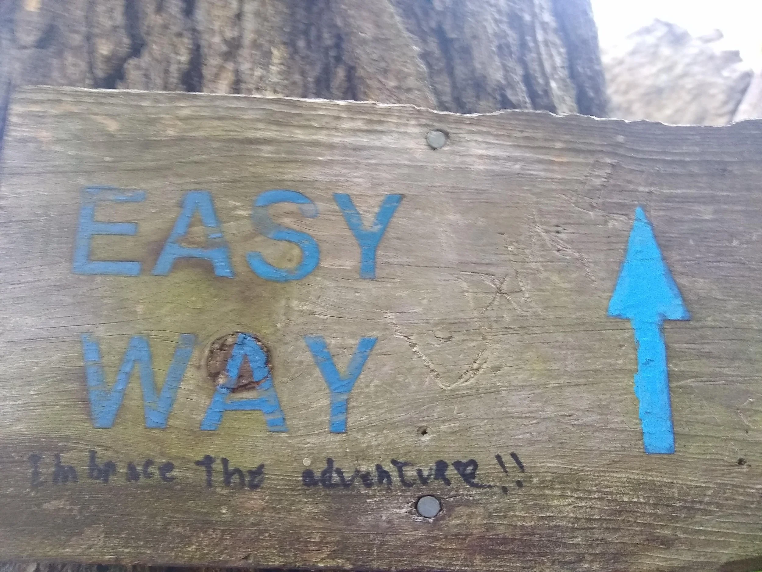 These vary from irreverent vulgarities to practical advice to things bordering on the profound. We pass lurid words writ large on the undersides of bridges. We find warnings written on candy-wrappers and taped to walls with band-aids. Once, at a shelter in Georgia, I find a dubious bit of graffiti claiming to be a quote by Lao Tzu, and the single line reverberates throughout my thoughts for the entirety of my journey, like the echo of some lost and sacred song sounding through the ages.