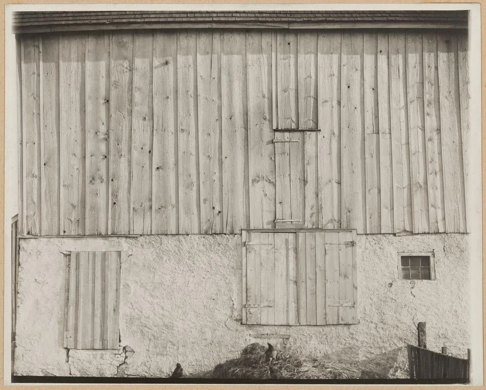 Wall Street, 1915, depicts a random moment of foot-traffic on the sidewalks of New York City, at some soft and transitional part of the day. The center of the photograph is dominated by the wall of a building that runs parallel to the sidewalk, and more strikingly, the massive rectangular openings in the wall that loom over the people passing below. The pedestrians at the bottom of the photograph are small and without feature, clad in coat and hat, facing away from the camera as they walk. They are moving through slanted light that is either the first rays of dawn or the last rays of dusk, heading toward their offices and office-tasks or away from them, though the viewer does not know which.