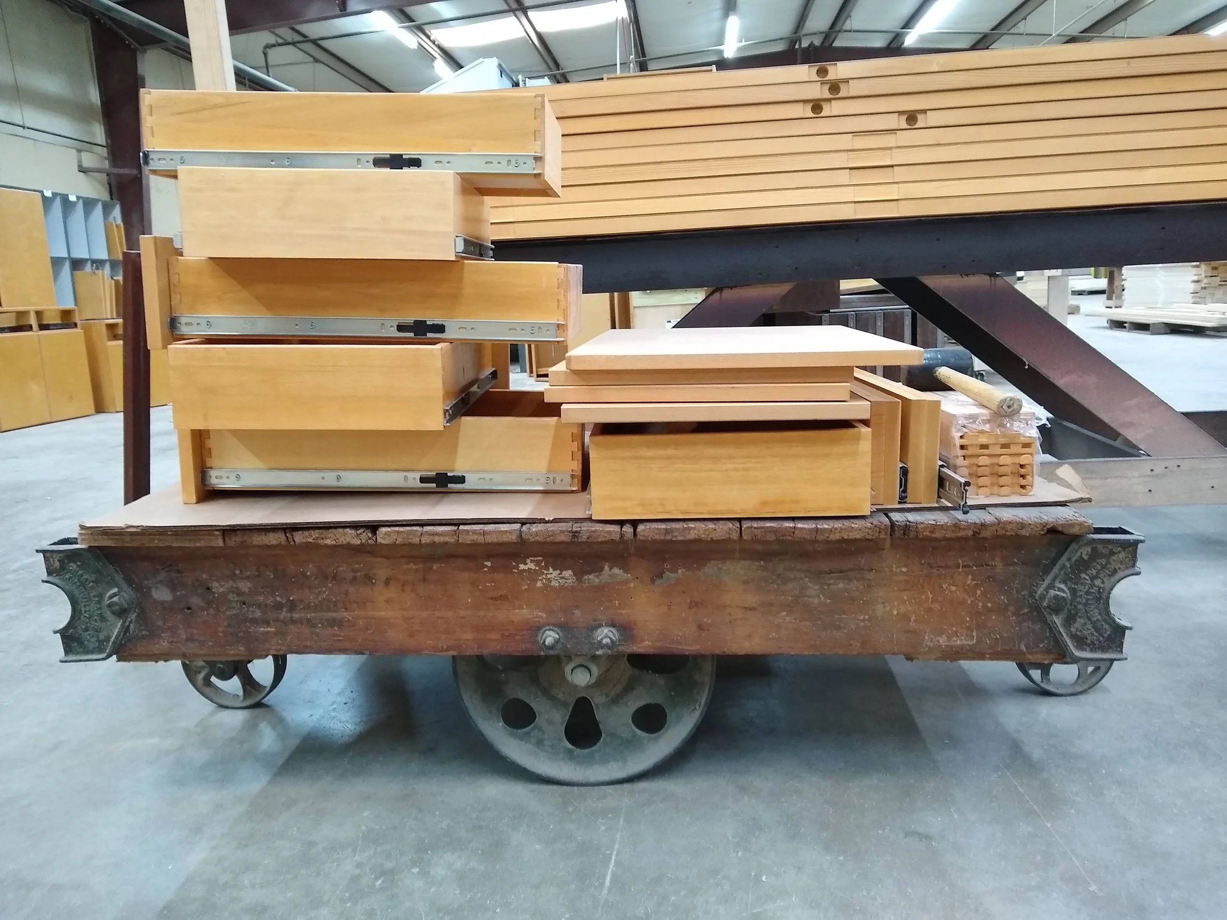 When unloaded, these dollies are slow and cumbersome and difficult to turn. When carrying hundreds of pounds of boards they are even worse. There is a mechanical, lumbering, old-world quality to them that is at odds with the hyper-efficient ethos of a modern manufacturing facility, where everything is supposed to be streamlined and LEAN. There is an inexplicable aura of the railroad about them, and they conjure images of bindles and hobos, of desolate skylines stained with smokestack twilights, of stow-away journeys through the outskirts of an older world. Camouflaged by the disorder of a busy cabinet factory their uniqueness goes unnoticed, and the more interesting aspects of their nature remain unexamined by most of my fellow workers. The dollies are instruments of simple balance, rolling fulcrums, and wherever balance is key profundity is near. I develop the impression that the soft-spoken significance of form inherent to these overlooked tools speaks to the potential of a deeper integration of the mundane and the marvelous within the fabric of our world, and presents the observer with a conceptual bridge between what is seen as banal and what is seen as beautiful.